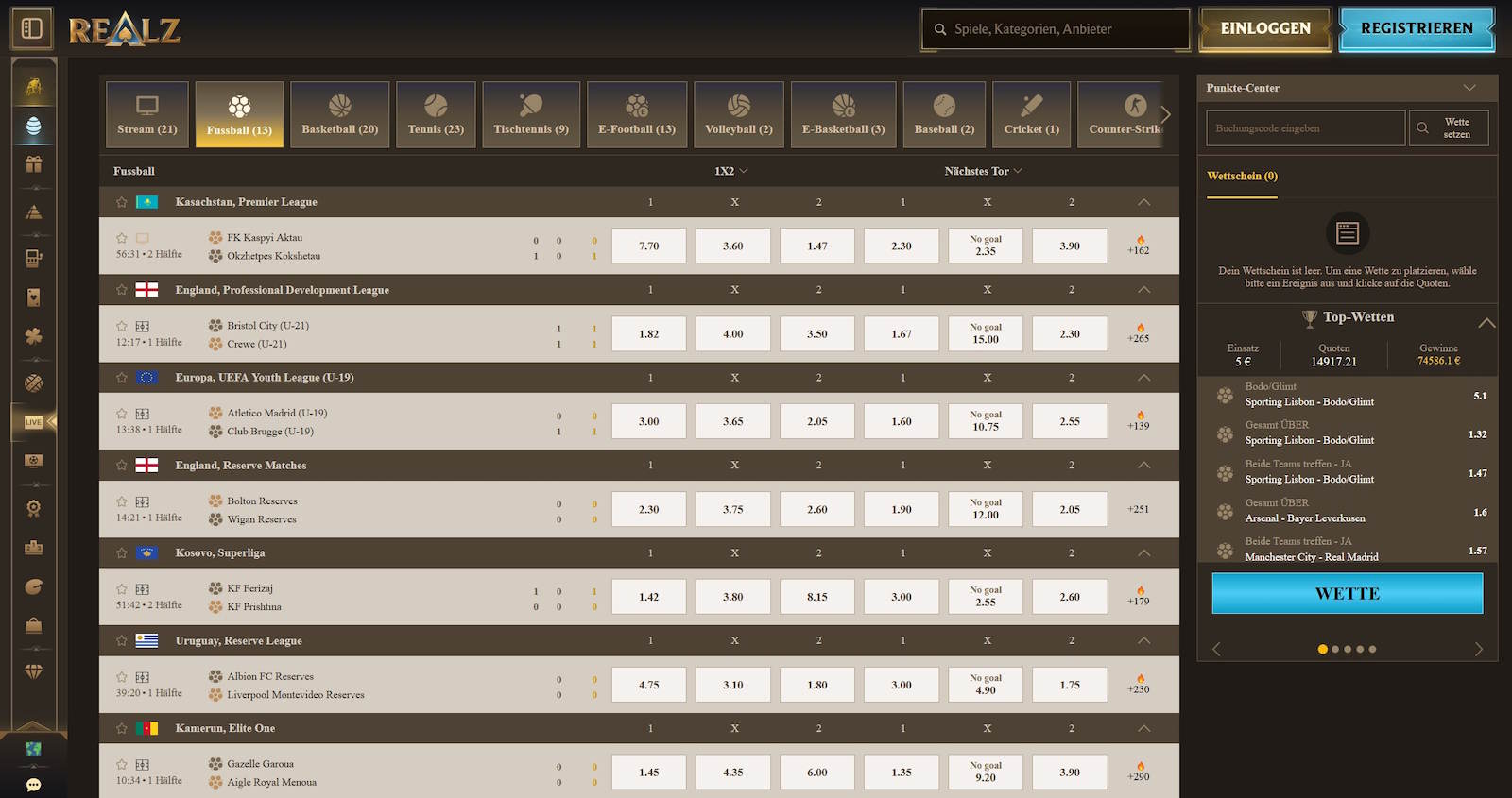 Mit Sportwetten und Livewetten